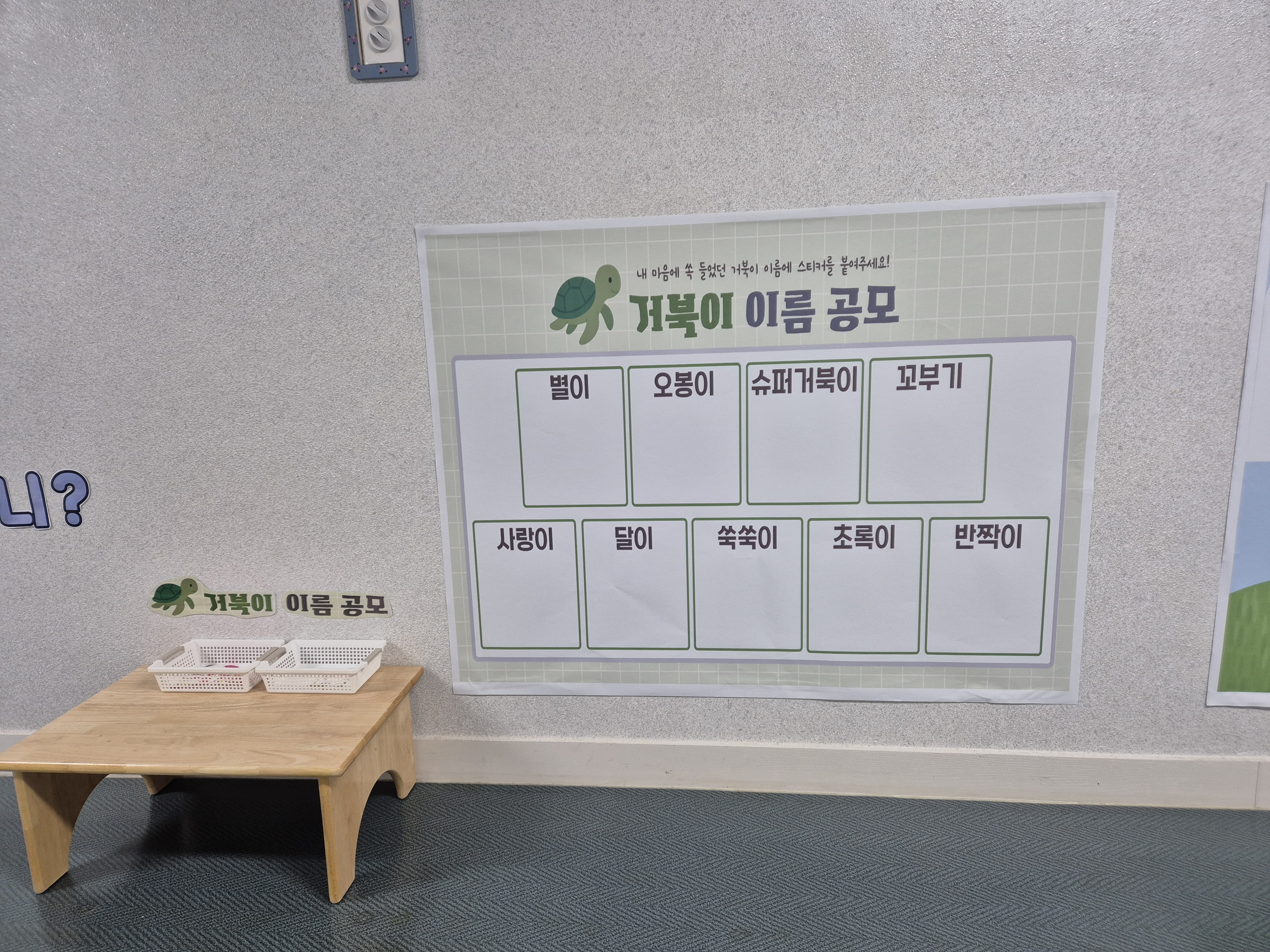 [느릿느릿 친구, 새로운 가족의 이름을 부탁해!] 유치원에서 키우는 거북이의 이름을 정하기 위해 친구들과 머리를 맞대고 토론합니다. 각반에서 이름을 제안하고, 최종적으로 아이들과 교직원들의 투표를 거쳐 우리 유치원만의 특별한 거북이 이름이 탄생합니다.
